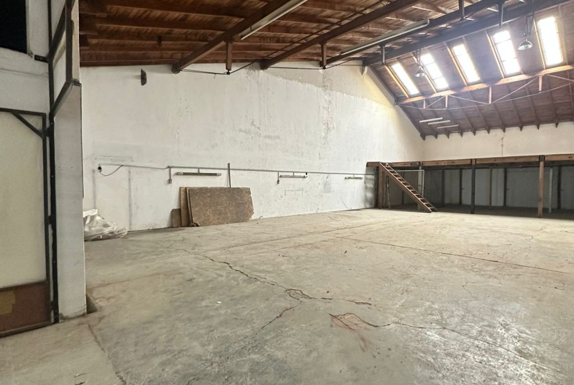 Galpon de 200 m2 con ingreso vehicular, oficina de 60 m2, baño, entrepiso de 60 m2, vidriera a la calle